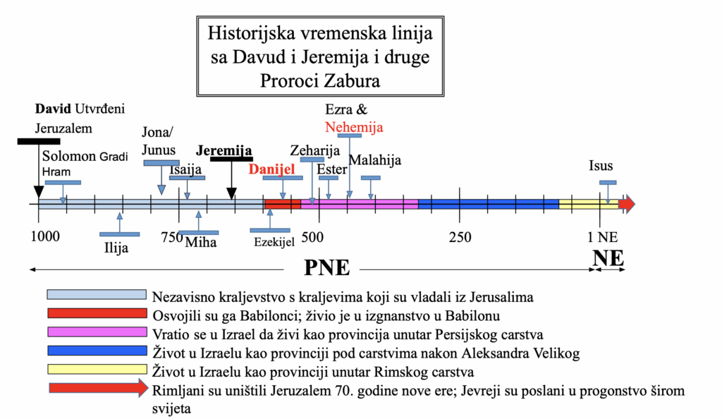 Ali primijetite da se čini da je ovaj novi savez za ‘dom Izraelov’ – Jevreje. Kako to da shvatimo? Čini se da jevrejski narod ponekad ima najgoru, a ponekad najbolju situaciju. Ovdje je drugi veliki prorok Zabura, Isaija (onaj koji je prorekao da Mesih dolazi od djevice ) je imao još jedno proročanstvo koje se povezuje sa ovim od Jeremije. Ova dva poslanika, iako su živjeli u razmaku od 150 godina (kao što možete vidjeti u vremenskoj liniji ispod) i stoga se nisu poznavali, dobili su poruke od Alaha koje se međusobno nadopunjuju tako da možemo znati da poruke potiču od Alaha.